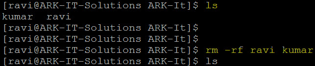 In above example two files 'kumar' and 'ravi' where created because we have provided the space in between 'kumar' and 'ravi' file names.