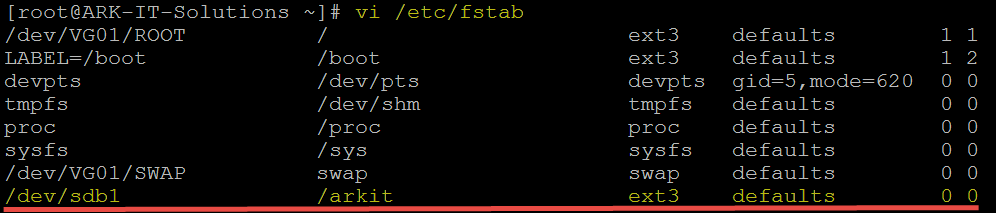 #vi /etc/fstab