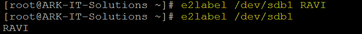 e2label /dev/sdb1 RAVI - to add label to