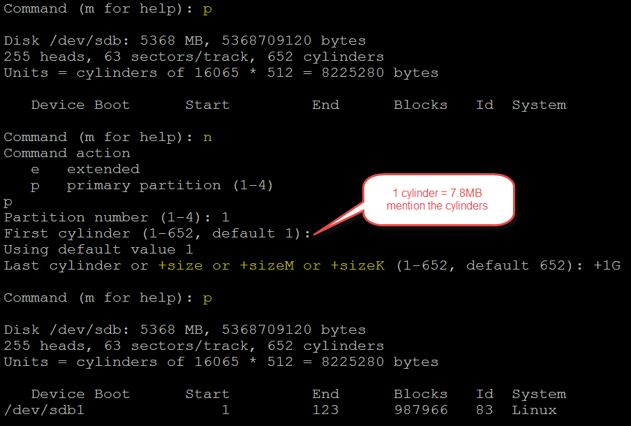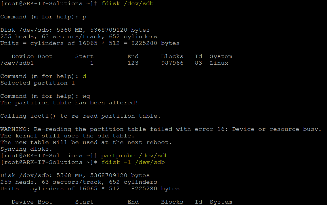 partprobe /dev/sdb – to update partition information to partition table without