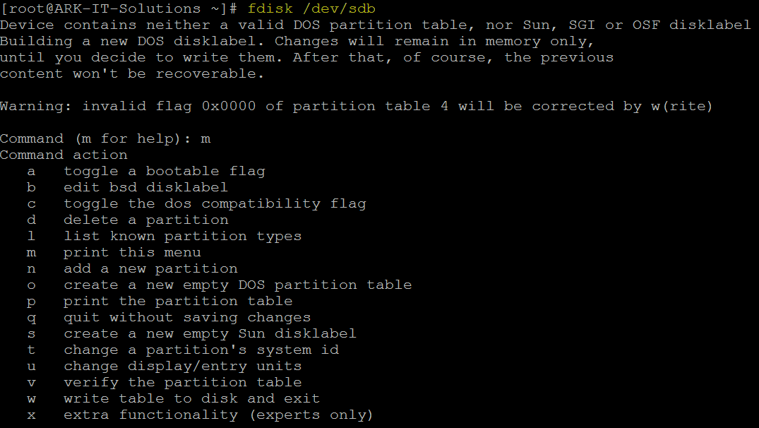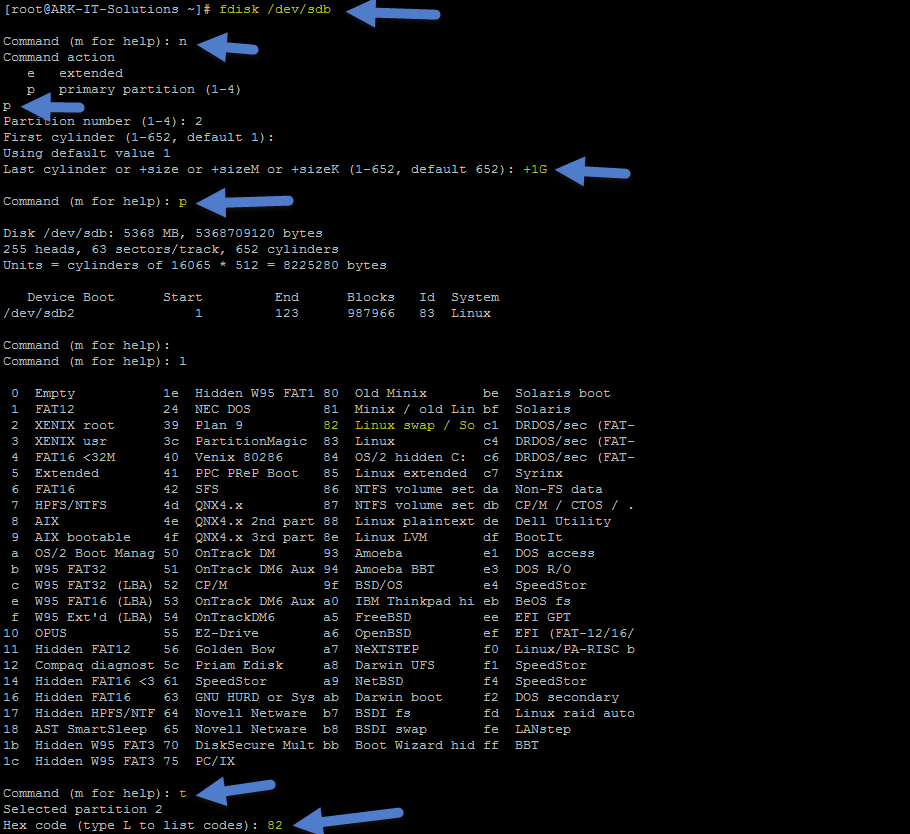 using t option in fdisk utility