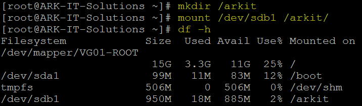 mount /dev/sdb1 /arkit - to mount the